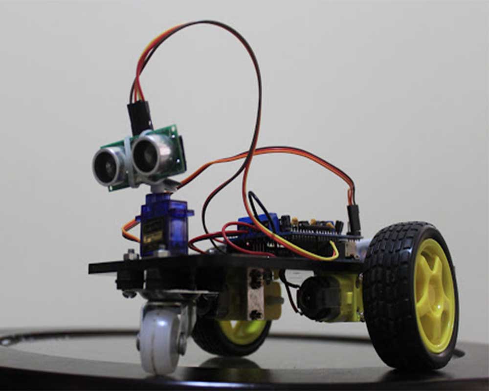 An Arduino-controlled autonomous robot that senses and overcomes obstacles on it's path. This project finds its applications in the field of navigation, mining and many more. The robot is controlled by an ultrasonic sensor. Depending on the input signal received, the micro-controller redirects the robot to move in an alternate direction by actuating the motors which are interfaced to it through a motor driver.